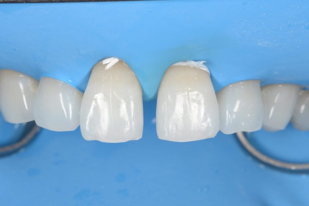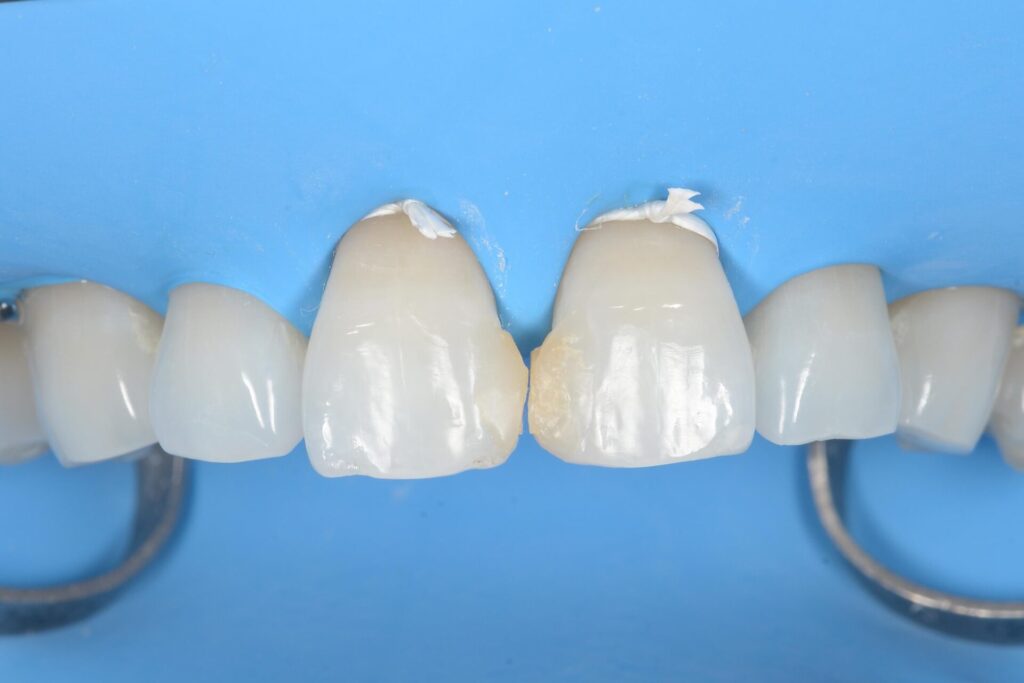 接着剤を付け、コンポジットレジンを盛った後です