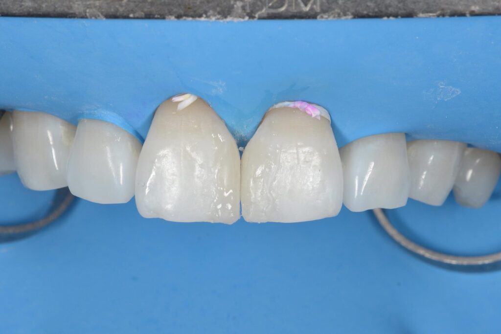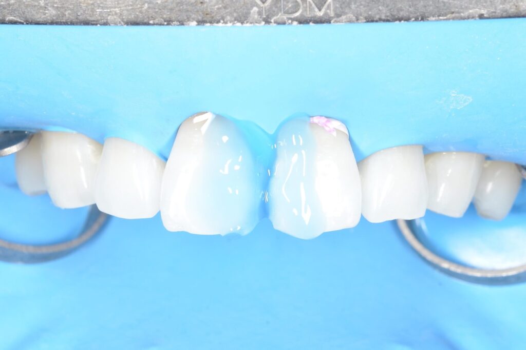 ラバーダム防湿をして、長期的に接着が長期的に安定しやすい環境を作ります