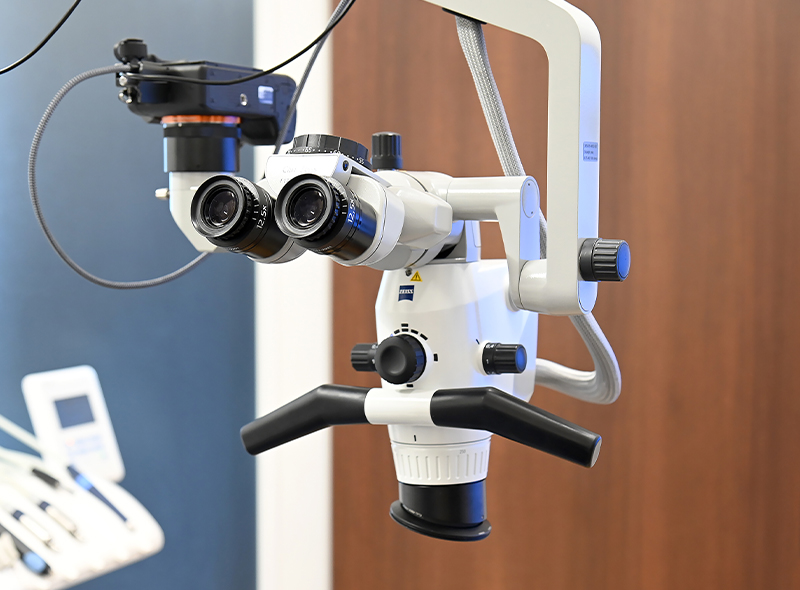 (歯科用実体顕微鏡)視野を肉眼の約20倍まで拡大できる機器です。基本的な治療にもマイクロスコープを使用し、細部まで見て確認しながら治療を行っています。歯科医師だけでなく歯科衛生士も使用して、治療やケアの精度を高めています。