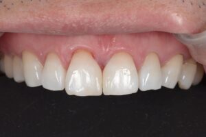 ラバーダム防湿をして詰め物を外したところ、前歯の隙間がかなり大きいことが分かる