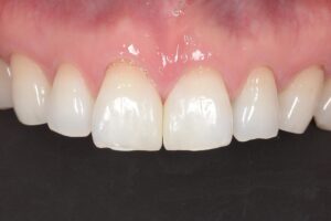 – 虫歯があれば削り、歯面を適切に処理(酸処理→接着剤塗布)し、複数色のレジンを積層して形態を整えます。 -